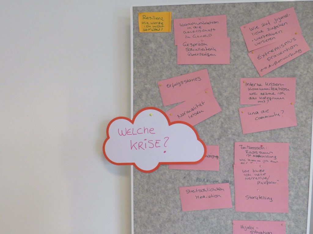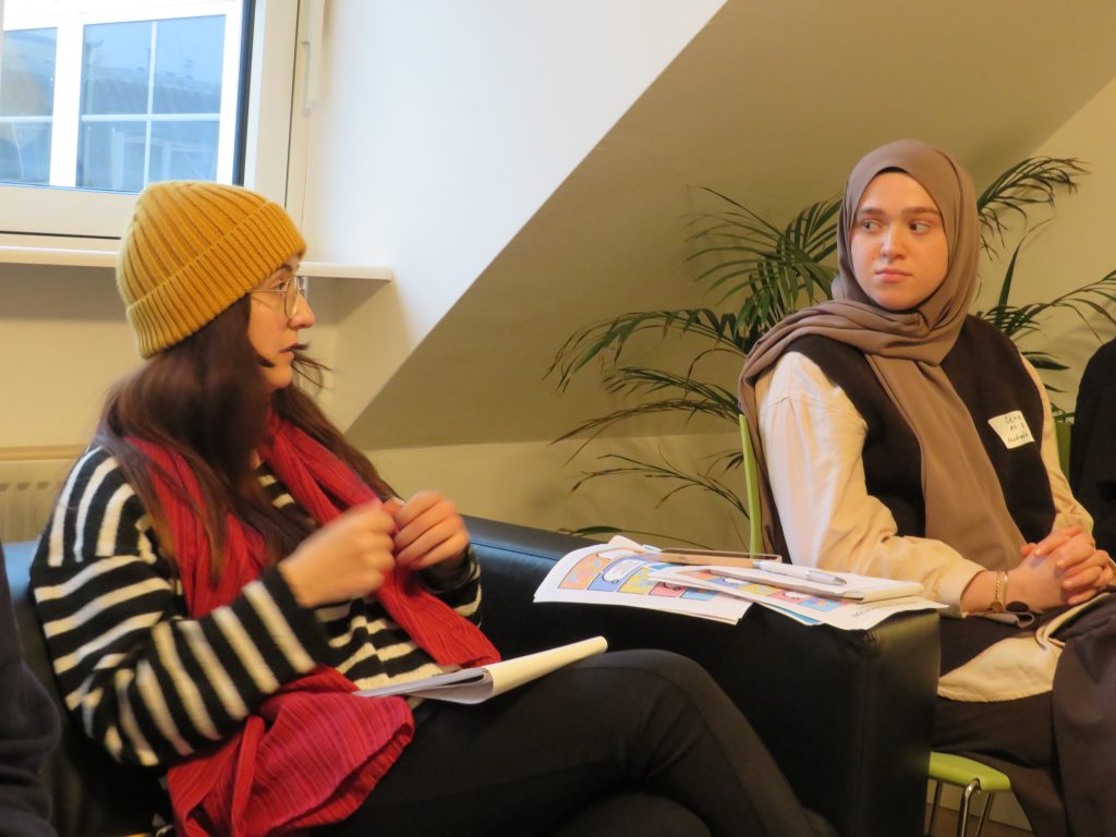 Gemeinsam besprachen wir Erfahrungen aus dem Alltag der Teilnehmenden. Im Fokus standen insbesondere Situationen, in denen die Future Leaders als junge muslimische, marginalisierte Personen mit Missverständnissen oder Konflikten konfrontiert waren. Auf dieser Grundlage entwickelten wir Strategien für wirkungsvolle Kommunikation und den Umgang mit kritischen oder kontroversen Themen.