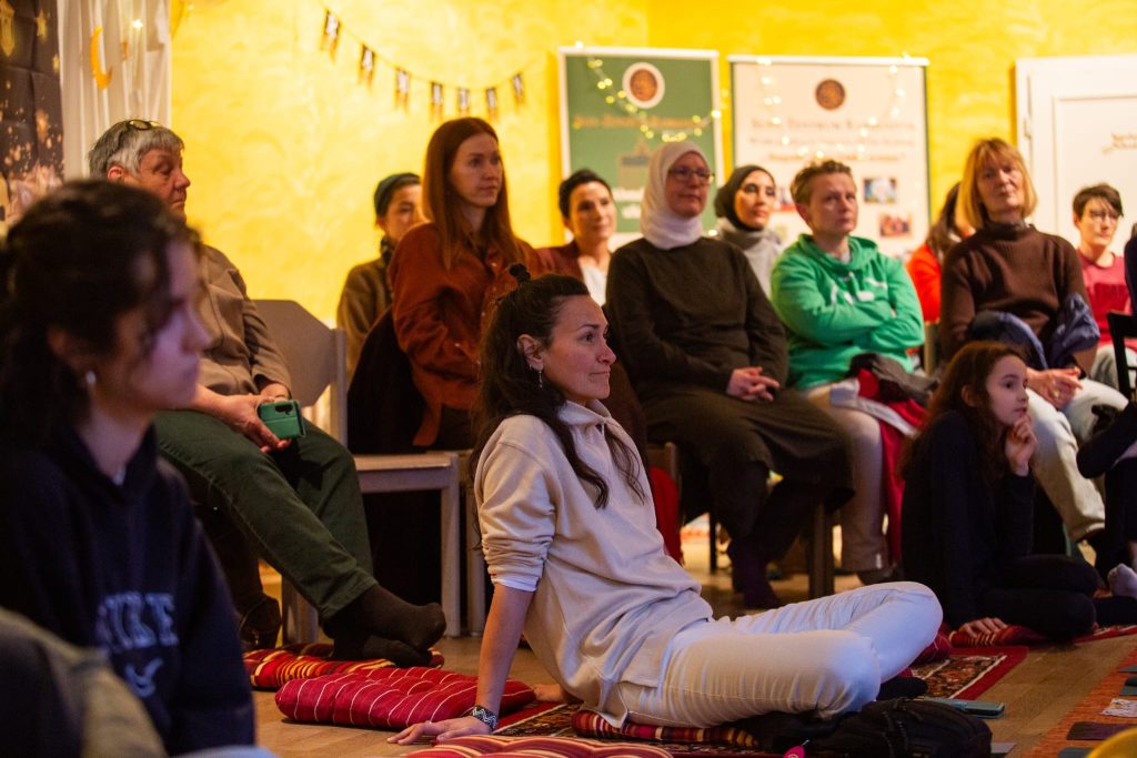 Die einzelnen Orte griffen das gemeinsame Motto auf unterschiedliche Weise auf: Im BBF standen persönliche Geschichten und Erfahrungen von Frauen aus verschiedenen Lebensrealitäten im Mittelpunkt. Im Sufi-Zentrum Rabbaniyya wurde der Abend musikalisch begleitet. In der Bilal Moschee hatten Jugendliche einen Vortrag zum Thema „Rechte der Frau im Islam“ vorbereitet.